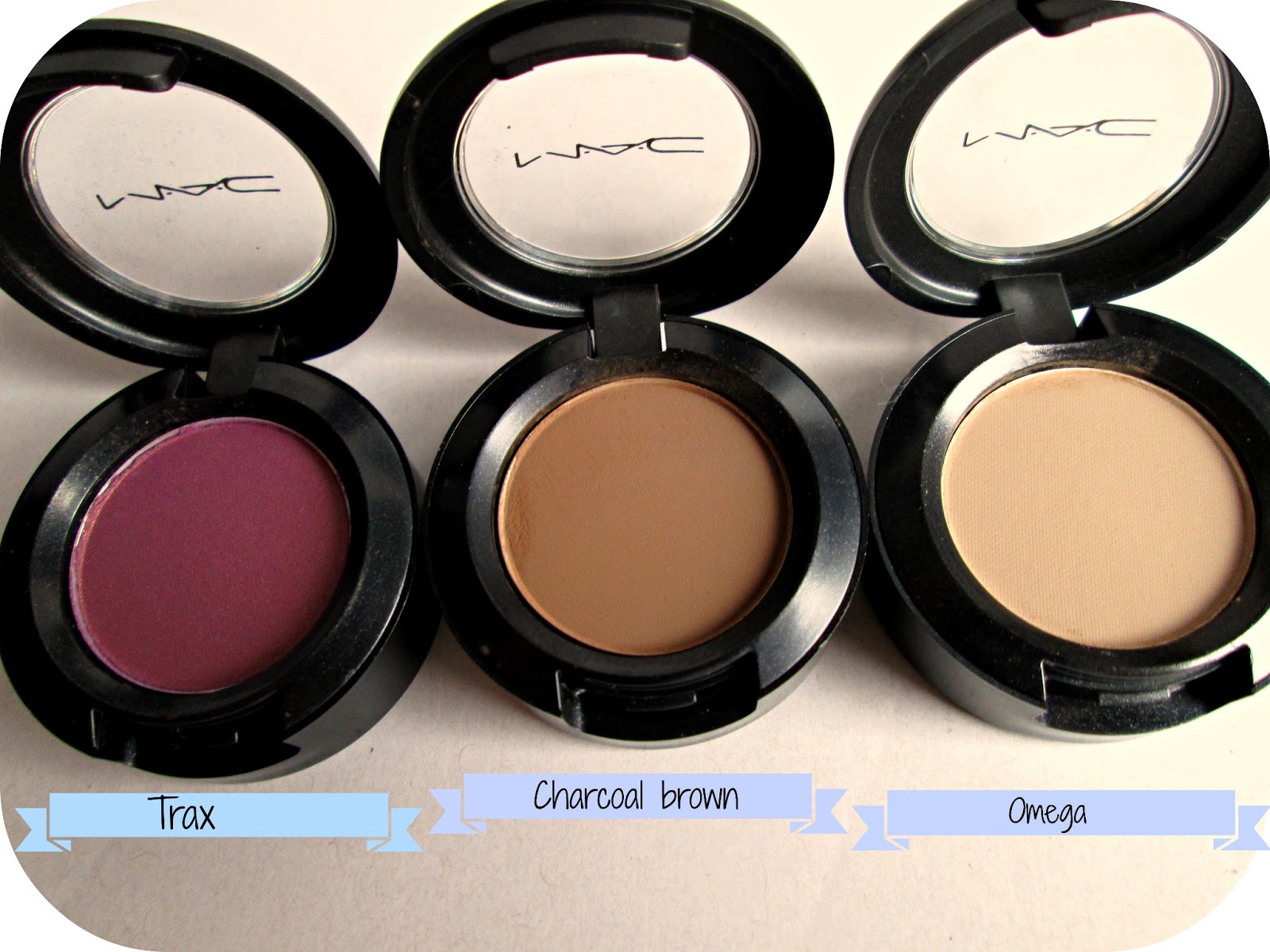 The next three things I ordered were eye shadows. Omega and charcoal brown are both Matt browns that I intend to use as eye brow colours, to help fill and define my brows, while Trax is a velvet finish, its a purpleish, red colour with shimmer. The MAC eye shadows retail for £12 each, are highly pigmented and really worth every penny.